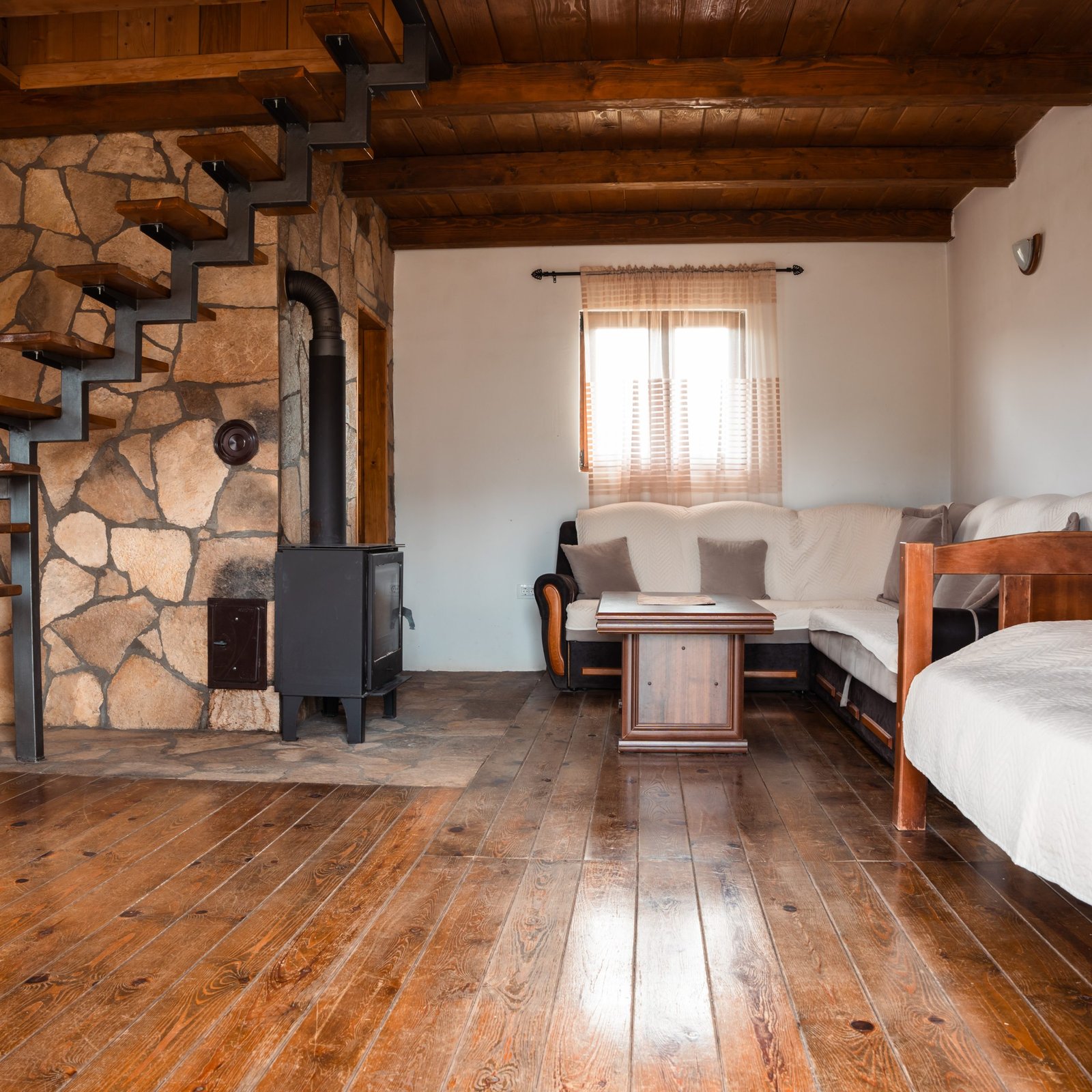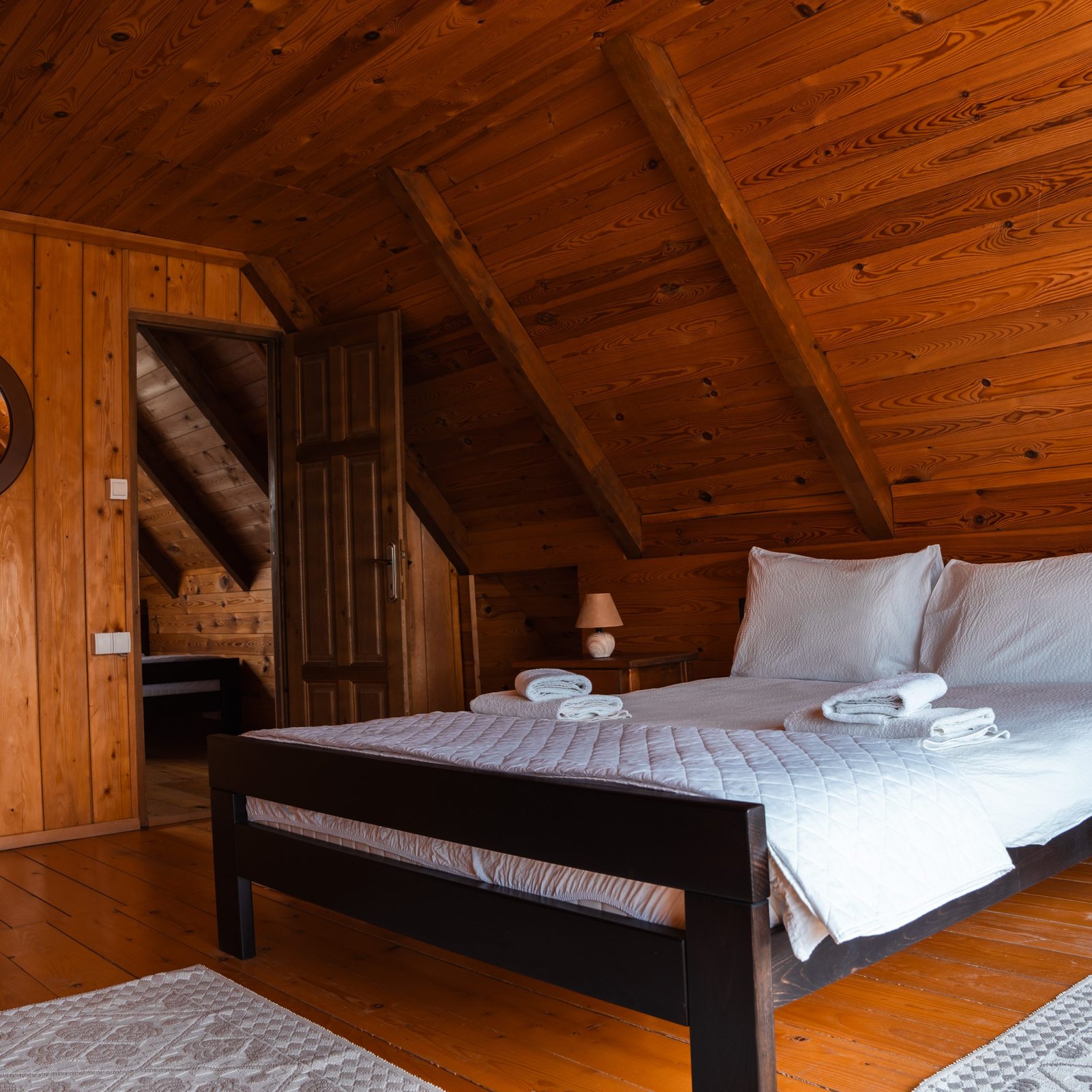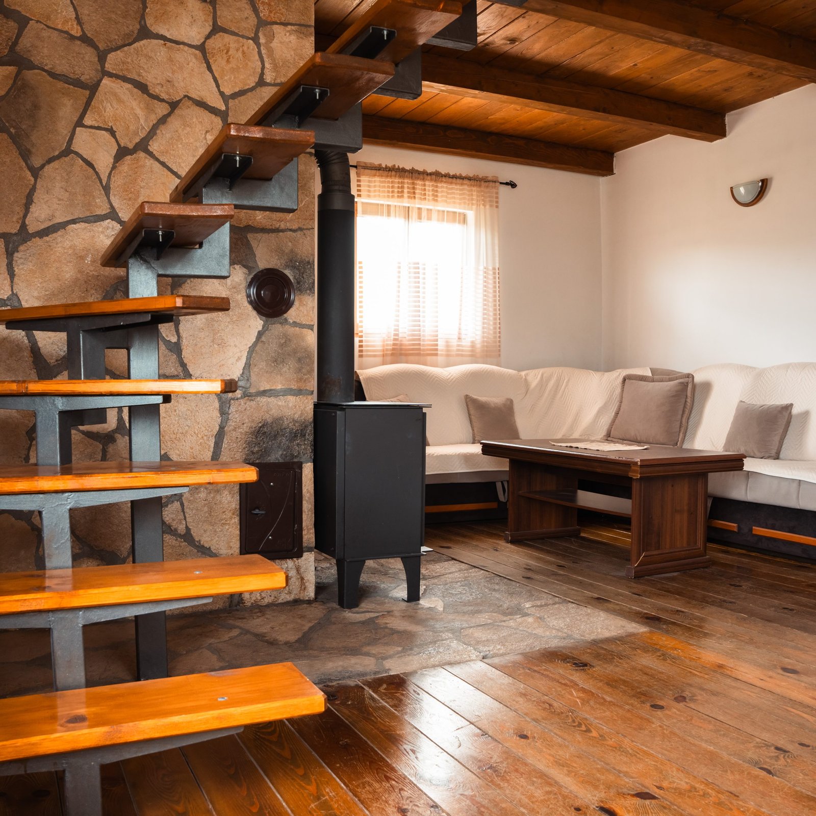 Deluxe apartman je dvospratna, prostrana kuća u kojoj može biti smješteno i do osam osoba. Na prizemlju se nalazi dnevna soba, u kojoj gosti mogu uživati gledajući TV. Na prizemlju se nalazi i ormar, kupatilo i peć na drva, kojom se gosti griju zimi. Na gornjem spratu se nalaze dvije spavaće sobe, u jednoj se nalazi bračni kreveta, a drugoj tri kreveta za jednu osobu. Moguće je dodati ležajeve, ukoliko u kućici boravi više od petoro ljudi.